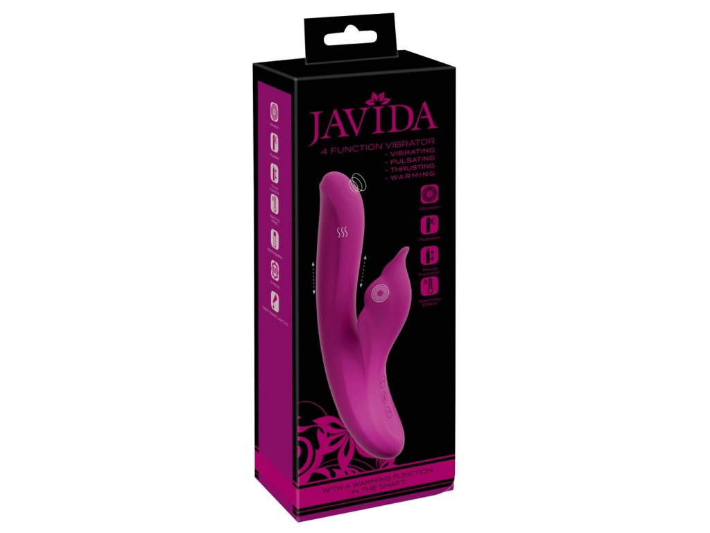 JAVIDA 4 Function Vibrator je pokročilý rabbit vibrátor, který poskytuje současnou stimulaci vaginy, G-bodu i klitorisu – a navíc přidává hřejivou funkci, která posouvá prožitek na úplně novou úroveň.