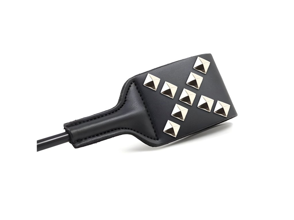 Vyrobený z kvalitního PU materiálu, je lehký, pevný a pohodlně se drží. Jeho plochá hlavička je zdobená kovovými cvočky, které při kontaktu s pokožkou vytvářejí ještě ostřejší vizuální i smyslový efekt.