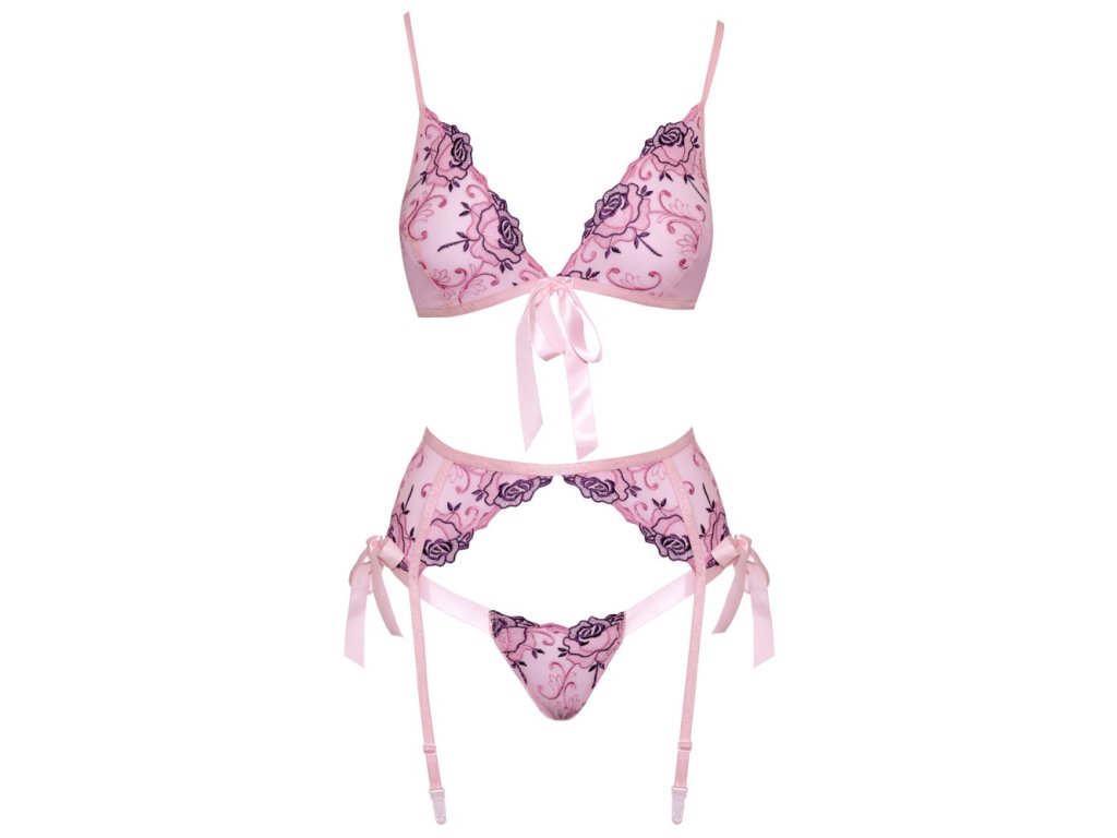 Objevte romantickou eleganci s exkluzivním setem „Floral Dream“ od značky Kissable, který obsahuje soft podprsenku, podvazkový pás a string tanga. Celý komplet je vyroben z jemného rosé síťovaného powernetu zdobeného delikátní květinovou výšivkou tón v tónu.