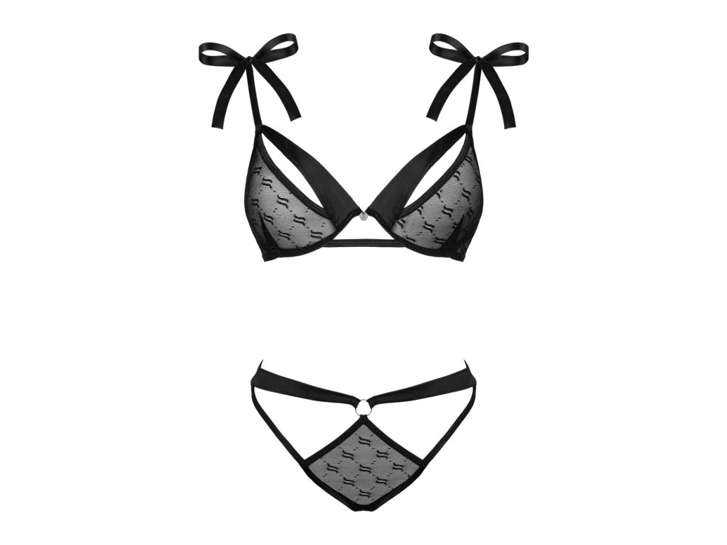Objevte kouzlo svůdné elegance s černým setem Obsessivia od značky Obsessive. Tento dvoudílný komplet tvoří podprsenka s kosticemi a kalhotky, které spojuje smyslný design s maximálním pohodlím.