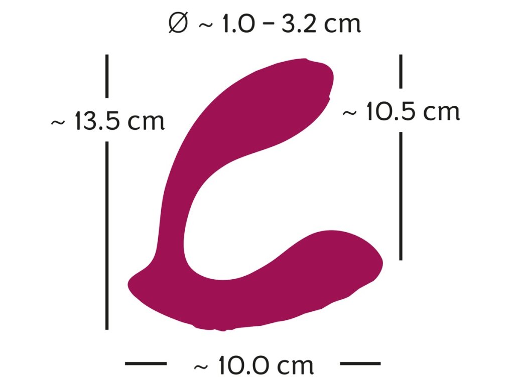 Tento ohybný G-bodový a klitorální stimulátor v jednom má dva výkonné, tiché motory, které lze snadno ovládat pomocí praktického bezdrátového ovladače (dosah až 5 metrů). Díky ergonomickému tvaru perfektně přilne k tělu a lze jej diskrétně nosit v kalhotkách – nikdo nic nepozná, vy si přitom užíváte sladké vibrace.