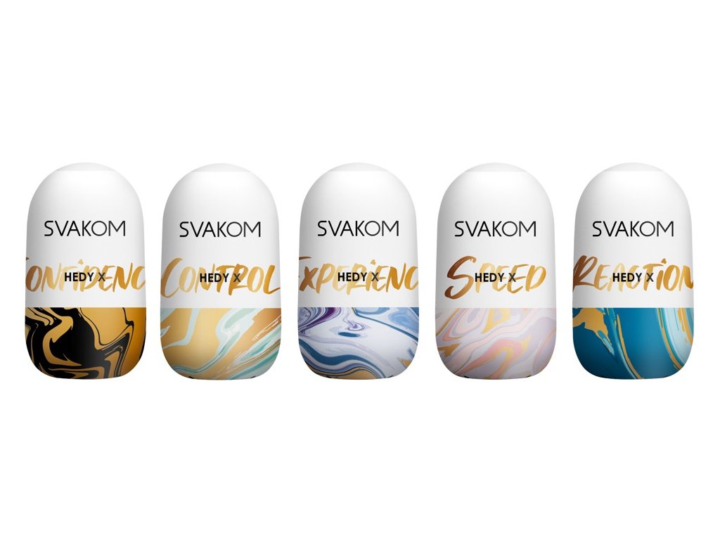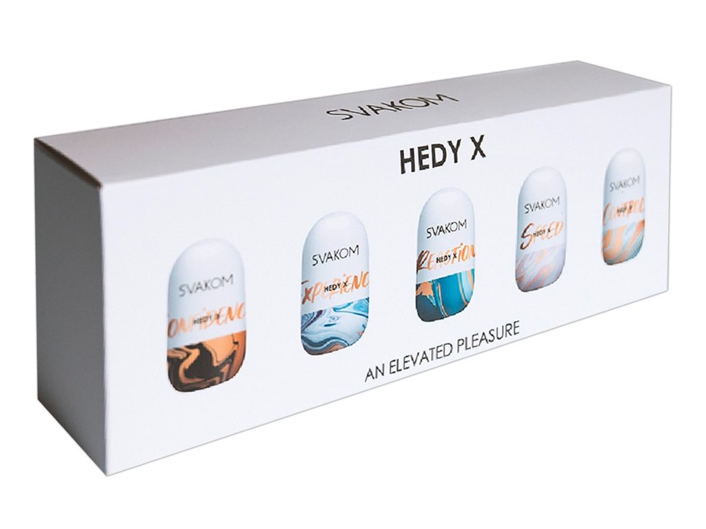 ✨ Svakom Hedy X – Mixed je luxusní sada 5 opakovaně použitelných masturbátorů v praktických eiförmigen pouzdrech. Každý masturbátor má jinou stimulační strukturu, takže si vždy vybereš podle nálady: